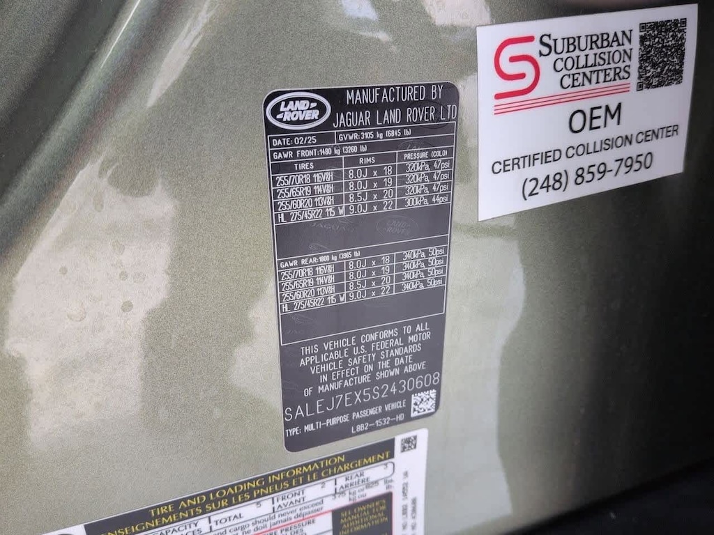 Clean CARFAX. Certified. 2025 Land Rover Defender 110 S 14-Way Heated and Cooled Electric Memory Front Seats, Adaptive Dynamics, Air Suspension Pack, Apple CarPlay & Android Auto, Black Exterior Pack, ClearSight Interior Rear View Mirror, Cold Climate Package, Electronic Air Suspension, Extended Leather Upgrade, Head-Up Display, Headlight Power Wash, Heated Rear Seat with Center Armrest, Heated steering wheel, Heated Washer Jets, Heated Windscreen, Leather Gearshift, Leather Wrapped Steering Wheel with PU Driver Airbag, Navigation system: Connected Navigation PIVI Pro, Power moonroof, Premium Upgrade Interior Pack, Tow Hitch Receiver, Wheels: 20 Gloss Black Style 6011. S AWD 2.0L I4 DI Turbocharged