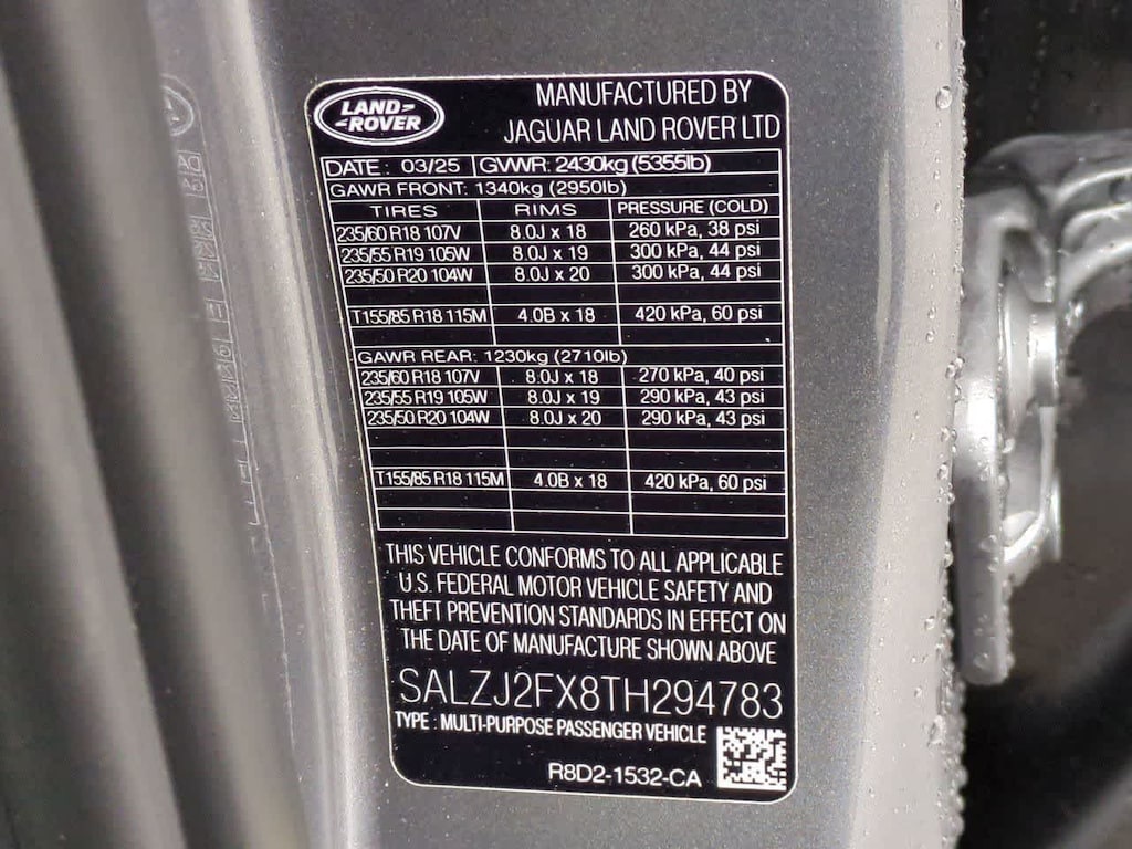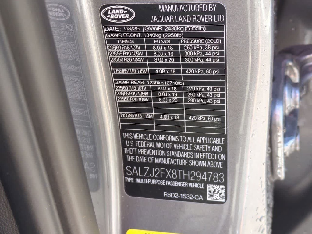Vin Number: SALZJ2FX8TH294783