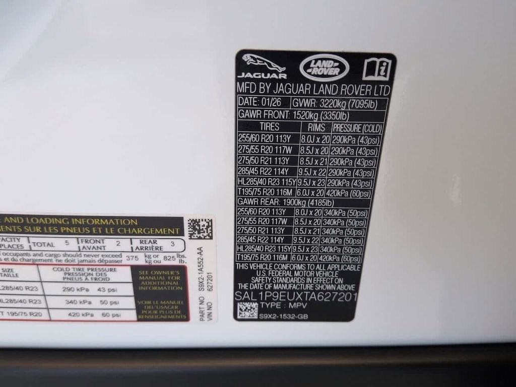 Vin Number: SAL1P9EUXTA627201