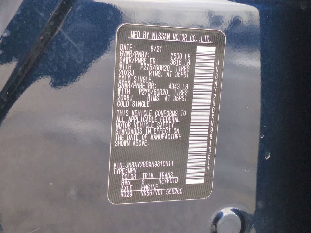 - JN8AY2BBXN9810511
